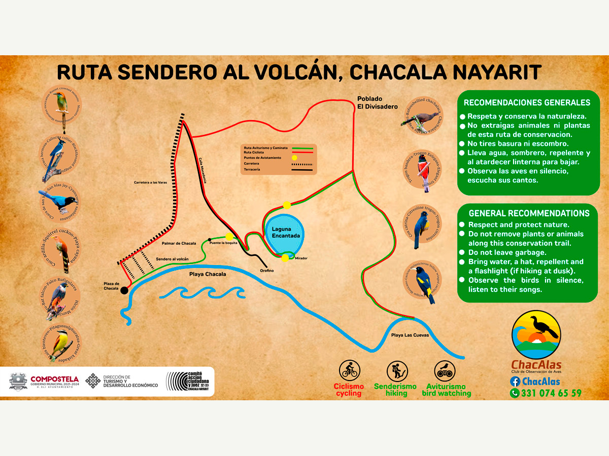 Explore the natural beauty of Chacala through its hiking, cycling, and birdwatching trails. There is already a trail leading towards the volcano, ideal for enjoying the landscape and local biodiversity.
